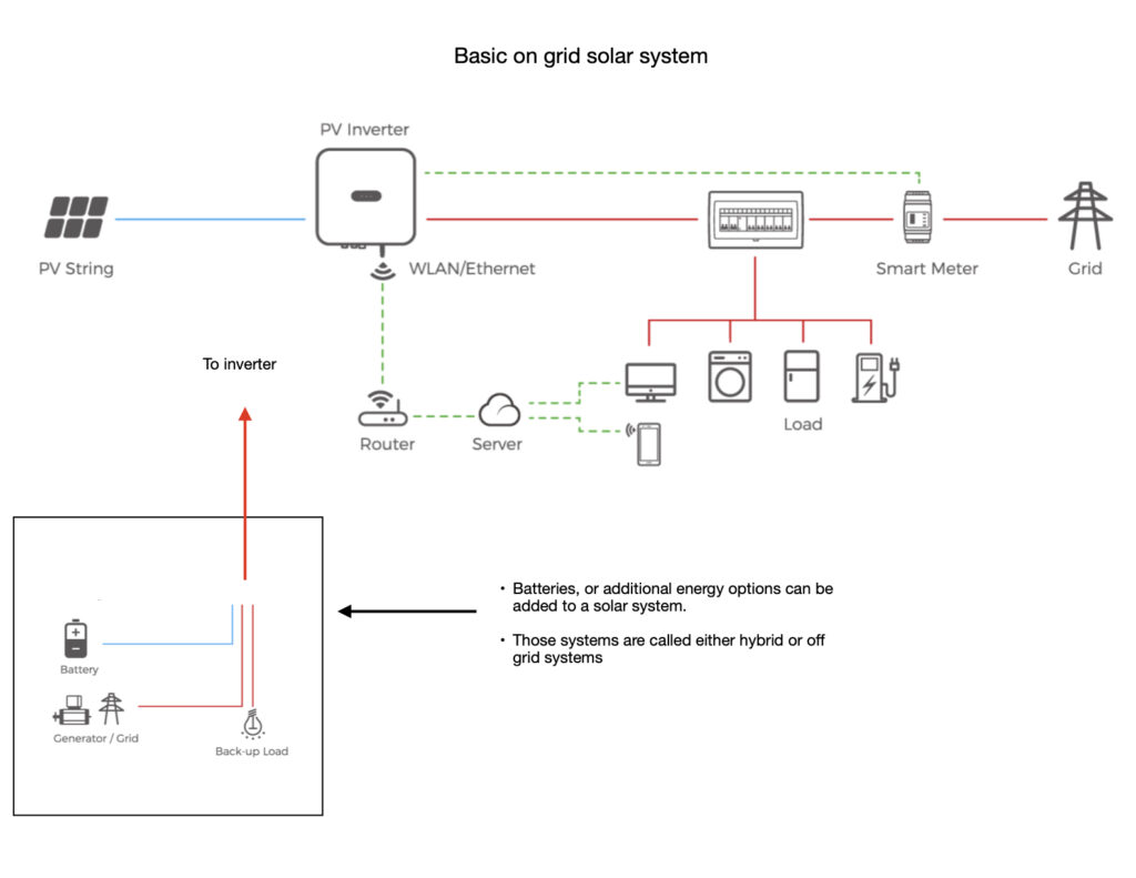 6. Battery Storage (Optional): Some solar systems include batteries to store excess electricity generated during the day for use during periods of low sunlight or at night. This can further reduce reliance on the grid and provide backup power during outages.